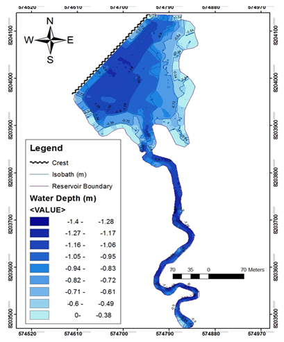 Figure-3e. Bathymetry of Makoye reservoir at its medium capacity in cool-dry season.