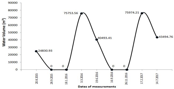 Figure 5 presents a hydrograph showing the seasonal hydrological regime of the Makoye reservoir based on bathymetric surveys conducted in two years period. The graph confirms that Makoye reservoir has very unstable water retention capacity given the rapid rate of volumetric change in water at short time intervals.