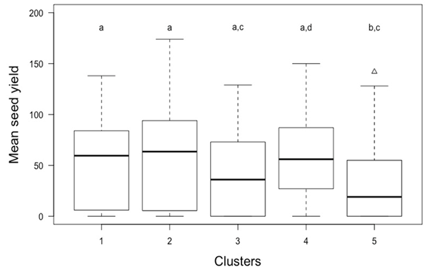 Figure-4. Mean seed yield per cluster for the P.patula clusters.