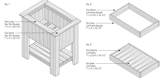 Countersinks and pilot holes were drilled through the face of the cap piece and into the tops of the slats and corner boards. This was secured with 1½-inch deck screws. This was followed by installing the other long cap piece and two short ones between the long ones (Figure 5).