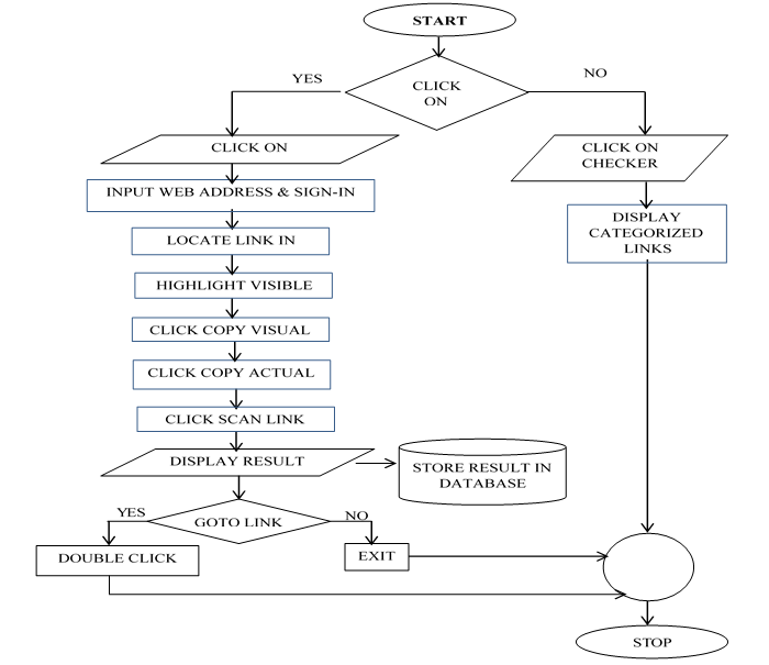 The system will categorize the links based on the result generated. The result generated will be in form of counts. The counts machine will assign values to the links in respect to its phishing properties. It classifies the link based on phishing properties or features and non-phishing properties. The system scans the link using the five categories defined in the previous chapter.