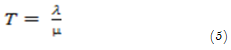 M/M/1 queuing model which is a single server queuing system with infinite capacity was used for the performance measure. The standard equations adopted from the work presented in Asrodia and Sharma [3] was used for the analysis. Traffic intensity (T) which is a measure of the strength of traffic in the buffer memory of an intermediate node is given in Equation 5.where λ represents the arrival rate and µ denotes the service rate. T< 1 denotes a steady state, but unstable if T > 1, this factor measures the efficiency of the system.