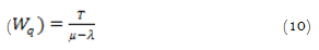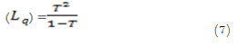 Average number of packet in the queue (Lq) that is, the average number of packets waiting in the queue before it is served is described in Equation 7.