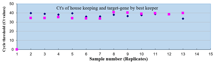 Data of ace1 normalization with multiple housekeeping genes in the experimental samples were calculated. In addition the statistical analysis performed individually by dividing the fluorescent data by its normalization factor, and comparative Ct (2-ΔΔCt) attained the changes in gene expression as a relative fold difference between experi­mental and calibrator samples, using the Livak method Livak and Schmittgen [22]and Andersen, et al. [32]constructed by GoldBio trade mark. The data of gene up and down regulations calculated according to Peredo and Cardon [33] of statistical hypothesis testing (The null hypothesis H0 means there is no difference and the alternative hypothesis H1means there is difference), this data obtained via z test and its common formula calculations. One-way analysis of variance (ANOVA) using SPSS software for detecting significant difference in amplification efficiencies between sample groups were included.