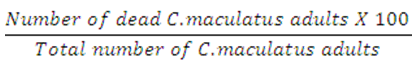 Table-2. High-sensitivity effect of the citrus powders [rate 1.0% (w/w)] on the percent (%) mortality of adult C. maculatus.