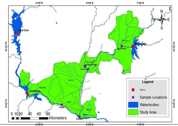 Figure 1. Reservoirs, Rivers and sample locations Niger State.