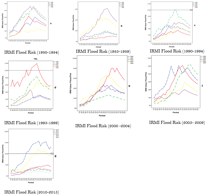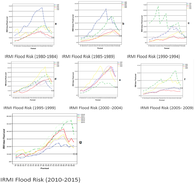 Figure 4a-g. Sokoto IRMI flood risk level 1980- 2015.