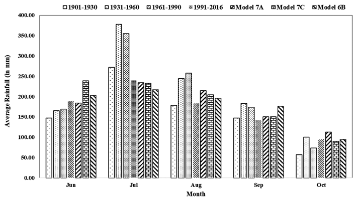 Along with the observed values, GCM data for rainfall, minimum and maximum temperature, surface humidity, 10m wind speed and pressure at mean sea level obtained from the Copernicus Climate Change Service website (https://cds.climate.copernicus.eu/) was used in this study. Data for all parameters from 5 GCMs was downloaded and extracted for past (1901 – 2016) and upcoming (2021-2050) years. The GCMs used in this study summarized in Table 1. These 5 GCMs are comparatively more precise for the Indian subcontinent and used by various researchers, like in the work done by Rana, et al. [9].