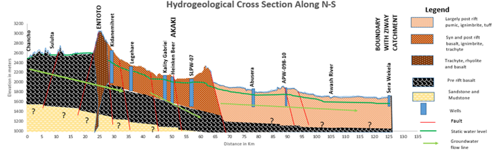 Both catchments form down sloping terrains that drop thousands of meters to the south and south east towards the rift floors. This gradient favors the occurrence of many springs at different elevation and develops relatively shallow groundwater level in the Adaa and Becho plains Figure 2.
