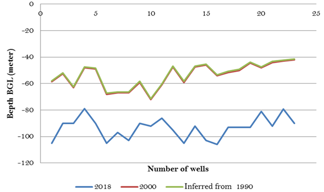 Figure-3.Drawdown Evolution for Old Akaki Wells in 1990, 2000 and 2018.