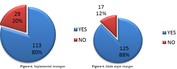 Figure 3 shows the effects and influence of implementing strategies. There had been major changes since the inception of the business either in the line (type) of business or in the products and/or services for 125 (88%) entrepreneurs. Those who have remained in the same line of business with the same products or services since inception of their business are 17 entrepreneurs who make up 12% of the total entrepreneurs interviewed.