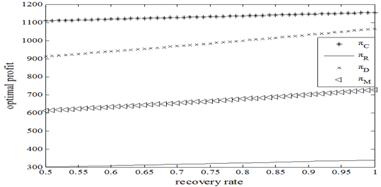 Figure-6. The impact of changing recovery rate on optimal profits.