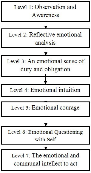 The emotional and communal intellect to act – At this stage, there is an understanding of how to manage the emotional perceptions and emotional consequences that are required to act and navigate the social interactions, politics, and fallout. |