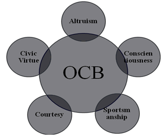 OCB defines that attitude which goes beyond formal job requirements and obviously it is not obligatory as the employees can decide whether to practice it and if yes to what extent (Organ, 1988). In accordance with Organ (1988) employees can perform OCB through five different ways: (i) Altruism, means behavior belief in or practice of disinterested and selfless concern for the well-being organization. (ii) Conscientiousness refers the behavioral quality that extends required expectations. (iii) Sportsmanship, defines the behavior that can tolerate inconvenient circumstances without any formal or informal complaints. (iv) Courtesy refers to the behavioral traits that assist to avert problems well in advance. (v) Civic Virtue means the behavior involving participations in overall organizational issues (Organ, 1988). Niehoff and Moorman (1993) have explained OCB as the attitude which does not exist in job description of an employee. Similarly Graham (1994) argued that the topic of OCB have concreted from civic citizenship research from beliefs, political influence and social virtue. However civic citizenship was described as the possible community related behaviors and personal living.