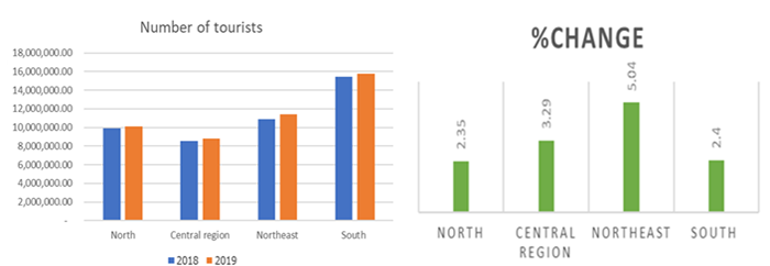 Figure-1. Comparative statistics of tourists in Thailand, 2018-2019.