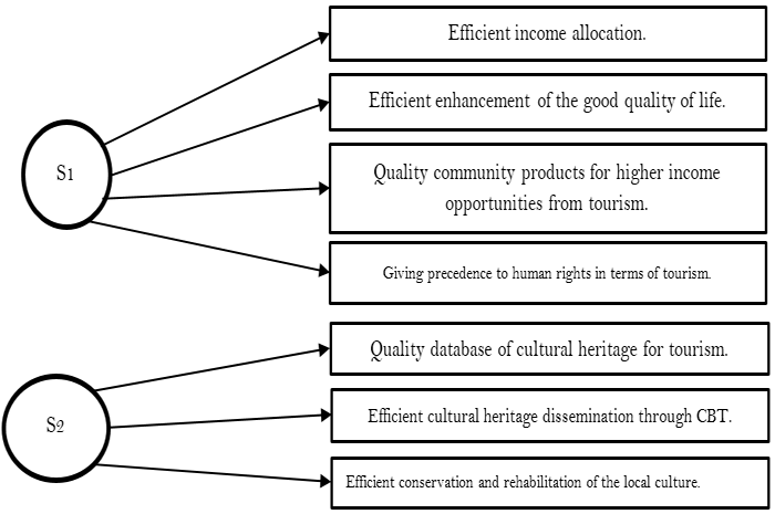 Guidelines on sustainable tourism and the sustainable fulfillment of human needs are continuously expanding. The increasing world population with its endless needs but limited environmental and natural resources has led to attempts to find more renewable resources that lead to less resource depletion. Humans must therefore develop and manage the remaining resources as responsibly as possible. This includes sustainable tourism indicators. Therefore, the Designated Areas for Sustainable Tourism Administration (Public Organization), or DASTA, has cooperated with the Thailand Community Based Tourism Institute (CBTI), Thai Ecotourism and Adventure Travel Association (TEATA), Green Leaf Foundation, and European Center for Eco and Agro Tourism (ECEAT) on a project called CSR-MAP. This project sets out the standard criteria for CBT management, which have been developed and modified from the Global Sustainable Tourism Criteria (GSTC). The standard criteria for tourism management cover five dimensions with a total of 29 objectives, see Table 1.