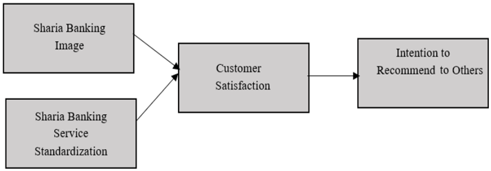 The study framework was developed based on an extensive literature review and solid theoretical grounding as well as logical and pragmatic relationships between the study variables, such as Sharia banking image, service standardization and customer satisfaction.