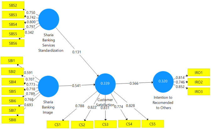 The current study focuses on Sharia banking image and Sharia service standardization on customers’ intention to recommend the service to others and the mediating the role of customer satisfaction grounded in marketing theory. The results of the first hypothesis show that the image of Islamic banking companies according to customers’ perceptions is positive. For a long time, Islamic banking has been trusted by customers and has a good reputation among Muslims.