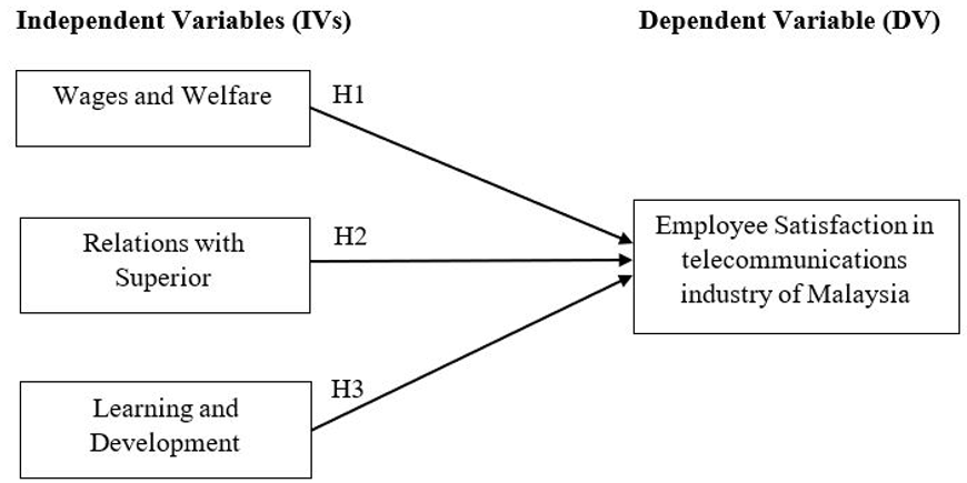 Thus, the purpose of this research is to address the research question, "What are the perceived effects of wages and welfare, relations with superiors, and learning and development on employee satisfaction in Malaysia's telecommunications industry?" Answering this question is critical since few previous studies have been conducted on employee satisfaction in the telecommunications industry, particularly in Malaysia (Kanapathipillai & Azam, 2020). The results of this study are intended to be applied in sustainable human resource management to increase companies’ sustainable competitive advantage by enabling flexible managerial decisions to maximise employee satisfaction (Strenitzerová & Achimský, 2019).