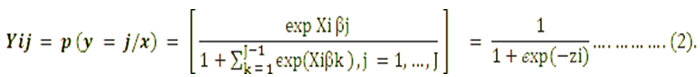Further computing equation (2) so as to just elaborate the actions of the explanatory variables on response variables or on the probabilities it’s important to derive the marginal effects of the predictor on the dependent variable [17] and hence differentiating equ-5 partially with respect to the explanatory variables provides marginal effects of the explanatory variables. Therefore when the equation undergoes further derivation process, the solution will be given as: