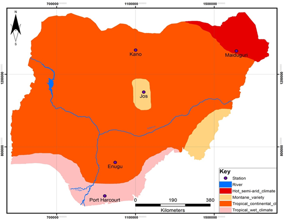 There are four major climatic belt across Nigeria based on the Köppen system of classification. According to Ogunsote and Prucnal-Ogunsote [7] this system of classification is generally accepted for the global evaluation of climatic belts. The major climatic belts in Nigeria include: