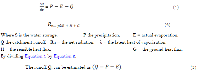Equation 3 was used to determine the water yield at seasonal and average annual basis.