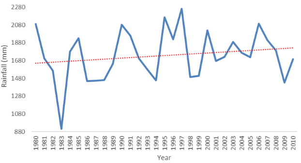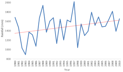 Fgure-7. Rainfall at Port-Harcourt for the period 1980 – 2010.