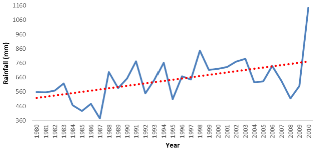 Figure-6. Rainfall at Maiduguri for the period 1980 – 2010.