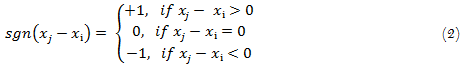 Equation 1 represents the calculation of the number of inversions in a given set of values (xᵢ) indexed by i and j. Where n is denoted as the number of data points, xj, and xi are the data values in time period i and j (j>i), respectively and sgn(xj−xi) is the sign function, presented as:
