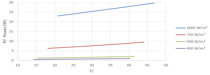 Figure-16. PV Efficiency at different cell temperature and solar radiation.