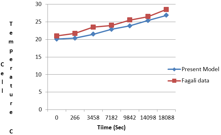 In order to validate our numerical model prediction described in equations (1 through 38), the system of equations were numerically coded and solved according to the Flow diagram displayed in Figure. 2. Data on PV cell temperature were unavailable in our laboratory. Therefore, the data presented by Fargali et al. (2008) were used for comparison purposes. The model predictions of the PV cell temperature were compared with data presented by Fargali et al. (2008) and presented in Figure 22. It has can be observed from this figure that some discrepancies exit. It is believed that the discrepancies are due to the fact that the Fargali et al. (2008) did not provide full disclosure of the various parameters and conditions of the PV cell temperature data. However, reference Rajapakse and Chungpaibulpantana (1994) had to be consulted on the various missing parameters in Fargali et al. (2008) in order to complete the validation presented in Figure. 22.