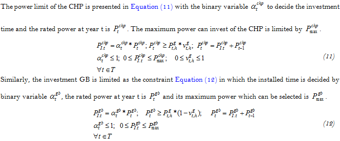 The optimal model consists of an objective function and constraints in which the objective function is minimizing the LCC of the project, the constraints guarantee to make investment decisions and the size limit of equipment together with the operation of EH as following.