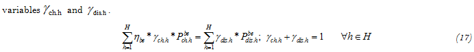 The electricity prices and load vary with one-day cycle (24 hours). The electricity price is high at peak hours and vice versa. Besides, the BESS can store the electrical energy at hours that the price or load of the electricity is low then it generates back to supply for the load at peak load hours or times have the high electrical price. In this context, the maximum power of the equipment can decrease the lead to reduce the investment cost together with the cost of purchasing energy from the market. Hence, the constraint on energy balance in the computed cycle of the BESS is expressed as Equation (17) and the charge/discharge of them can be expressed through two binary