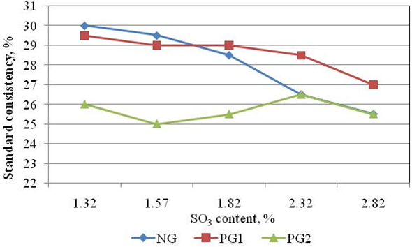 It should be noted that the water-soluble form of P2O5 and F- in PG2 are higher than those in PG1 and NG. It means that water-soluble P2O5 and F- in phosphogypsum induce longer setting times of cement. The water demand of cement reduces or the workability of cementitious mixture increases when the content of gypsum or impurities in cement increases. These results are in good agreement with those of previous studies (Akın and Sert, 2004; Islam et al., 2017) where the setting times of cement containing high water-soluble P2O5 and F- impurities are longer. For instance, Sadiqul Islam showed that the water demand of the mortar initially decreases when the content of the phosphogypsum in cement increases (Islam et al., 2017).