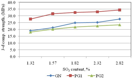 Figure-4. Effects of gypsum on 3-d compressive strength.
