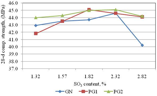 Figure-5. Effects of gypsum on 28-d compressive strength.