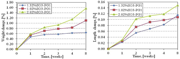 Figure-8. Effects of PG1 content on weight and length change of mortar sample.