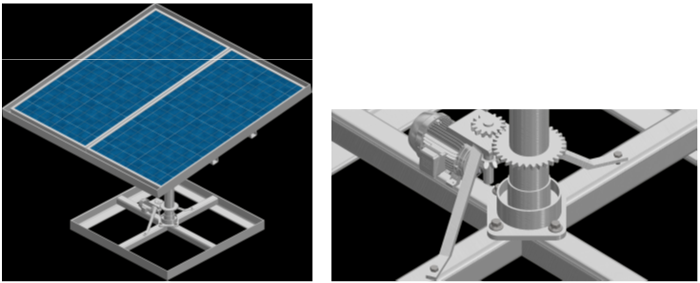Figure-4. Sun tracking PV system and enlarged view of the drive mechanism.