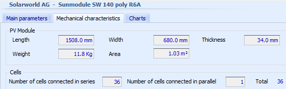 Table-1. Sun module SW 140 Poly R6A solar array dataset.