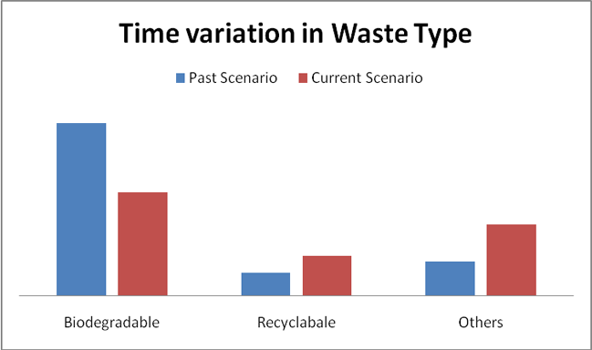 The 20th century has led to drastic change in the type of waste produced as shown in Figure 2. Earlier, there were large quantity (70-80%) of biodegradable waste but there is only 45-50% of biodegradable waste and 50% of other waste including plastic, paper, hazardous, biomedical etc (Abhishek & Mukherjee, 2019; Nandan et al., 2017; Paulraj et al., 2019). Higher consumerism, rapid population growth with unplanned urban development, and lifestyle changes have led to increased volumes in solid waste as well as more plastics and certain inorganic materials contents.