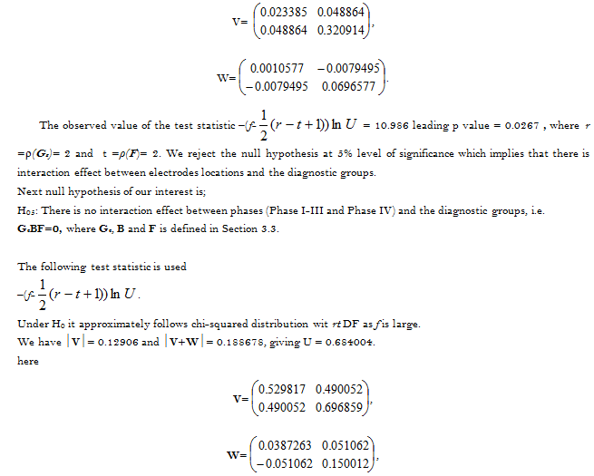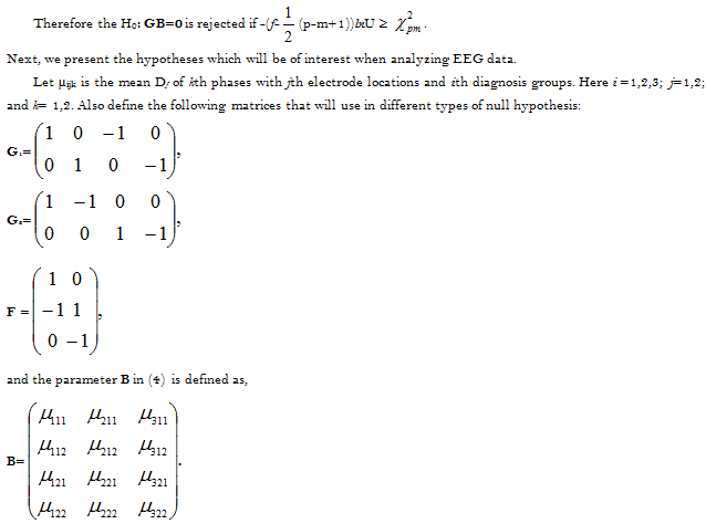 In the next section, background characteristics of EEG data including the assessing complexity of EEG signal will be discussed. In Section 3, multivariate approach to the statistical analysis of EEG data will be presented. Issue of model checking as assessment of the multivariate normality, and equality of covariance matrices also discussed here. In Section 4, the obtained results will be presented. Finally, the last section comprises the discussion.