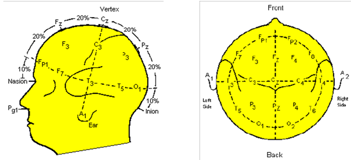 Source: Map of locations of the EEG electrodes/channels on the scalp according to International 10-20 System. EEGs were recorded from Fp1 and Fp2, which are the standard locations for treating patients with ECT.