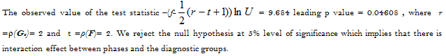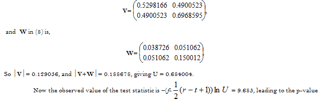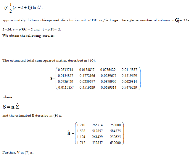 To test the H0: GB=0, i.e. F= I ,the identity matrix, Srivastava [30] suggested to use the likelihood ratio test statistic. The null hypothesis H0 is rejected if