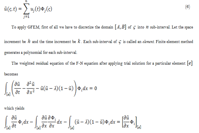 Galerkin Finite Element Method (GFEM) is an efficient numerical method for approximating numerical solutions of various problems in different branches of science. In this section, we formulate GFEM for the numerical solution of FitzHugh-Nagumo equation given as: