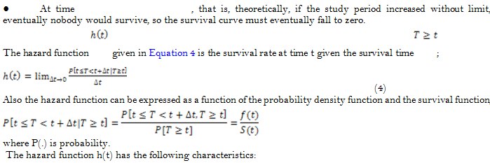 The Cox proportional hazards (CPH) model is one of the widely used models in survival analysis. It evaluates simultaneously the effect of the covariates on survival. Cox proportional hazards models links the hazard (the instantaneous rate of failure) to the covariates. In other words, it allows us to examine how specified variables influence the rate of a particular event happening at a particular point in time. This rate is commonly referred to as the hazard rate. The Cox model is expressed by the hazard function denoted by h(t) and it is usually given in Equation 5 as;