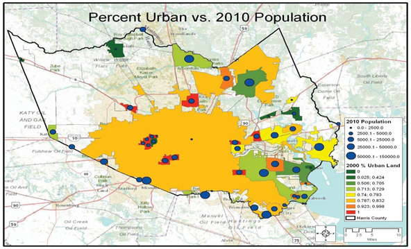 Harris County is predominantly urban land dominated by Houston, the major metropolitan center and the fourth largest city in the United States, as such, high percents of urban land in adjoining cities is expected. With urban expansion the tree cover is easily destroyed if not protected. The potential to retain spaces and places for both the built, unbuilt, and population expansion is possible. Planners and policy makers must keep abreast of change and the determinants of change. It is clear that space is still available for a merging of all concerns and as McHarg (1971) indicates; it requires building with nature, and not one first and then the other. This research helps policy makers do the former.