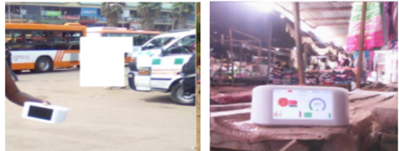 Figure-2. Air visual nodes in bus-station and in commercial areas measuring the concentration levels of PM pollutants.