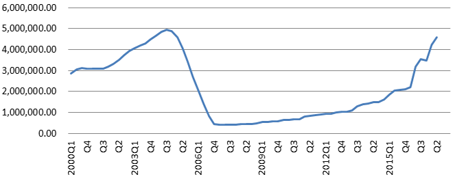 In response to the foregoing challenges in fiscal sustainability and budget management in Nigeria, the government introduced some far reaching budgetary reforms in 2004. Some of the key fiscal policy innovations of the reforms were the introduction of oil price based Fiscal Rule and fiscal consolidation. The main thrust of the Fiscal Rule is that government revenues will be based on a benchmark price that will be less than the prevailing market price, and the excess revenue that accrues to government will be saved for budget stabilization purposes. The Excess Crude Account (ECA) was therefore created to warehouse such excess revenue. It is noteworthy that the ECA account grew to about $20 billion between 2004 and 2007 Figure 4. However, a large proportion of the ECA was used to stabilize the economy in the wake of the Global Financial Crises of 2007 to 2009 that impacted oil price developments worldwide.