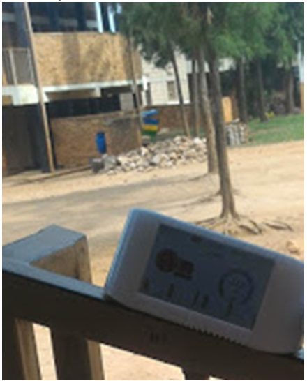 The main goal of this paper is to assess seasonal levels of outdoor air temperature, CO2 concentration and relative humidity in school buildings of Kigali city. For each school, sampling activities were performed during both dry and rainy seasons. Data were collected for long dry season which covers the months of June, July, August and September (JJAS), for short dry season covering January and February (JF). The sampling was also during short rainy season covering months of October, November and December (OND). In dry season we considered three rounds of sampling where students are in schools during day time. The first round was conducted in two first successive weeks of July, second round in two successive weeks of August and the last round in two successive weeks of February of 2018. For rainy season we considered the first two weeks of September, October and November of 2018 for first, second and last round respectively where the student are also in schools during day time. Air Visual Nodes instruments were used to collect data of ambient air temperature, concentration level of CO2 and relative humidity (RH). After sampling activities all collected data were analyzed using statistical methods. The following Figure 2 illustrates the sampling activities at the field during data collection.