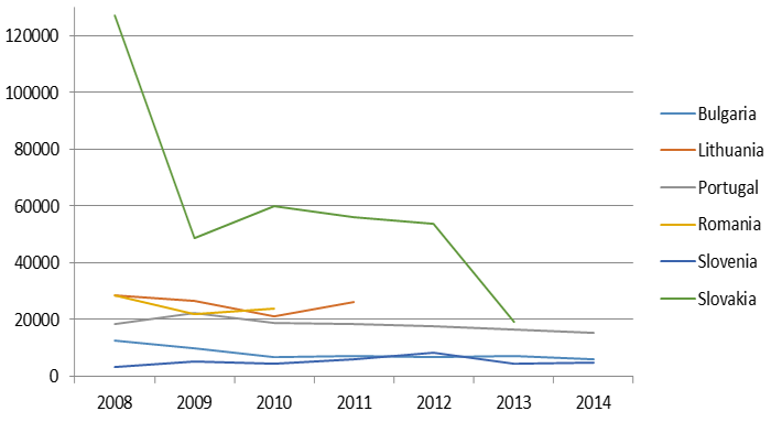 A common tendency in many EU countries is a diminution of the personnel and researchers in agrarian R&D activity Figure 6. The exceptions are Netherlands, Portugal and Slovakia, where there is a considerable augmentation of cadre endowment of agricultural R&D activity.